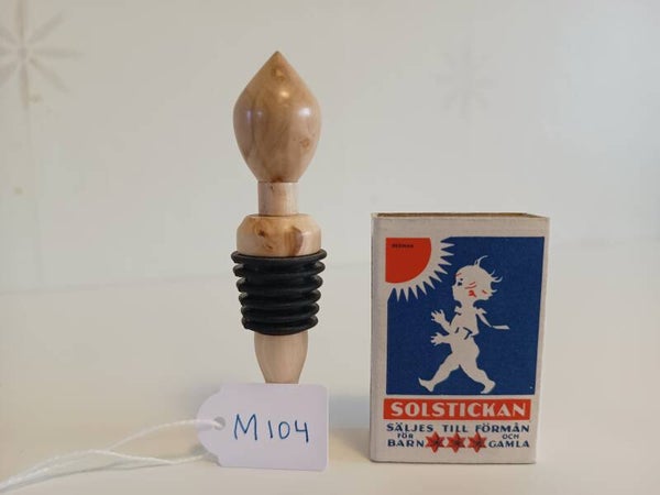Flaskstopp av äppelträ som är svarvad och slutligen behandlad flertalet gånger med livsmedelssäkert friktionsvax.