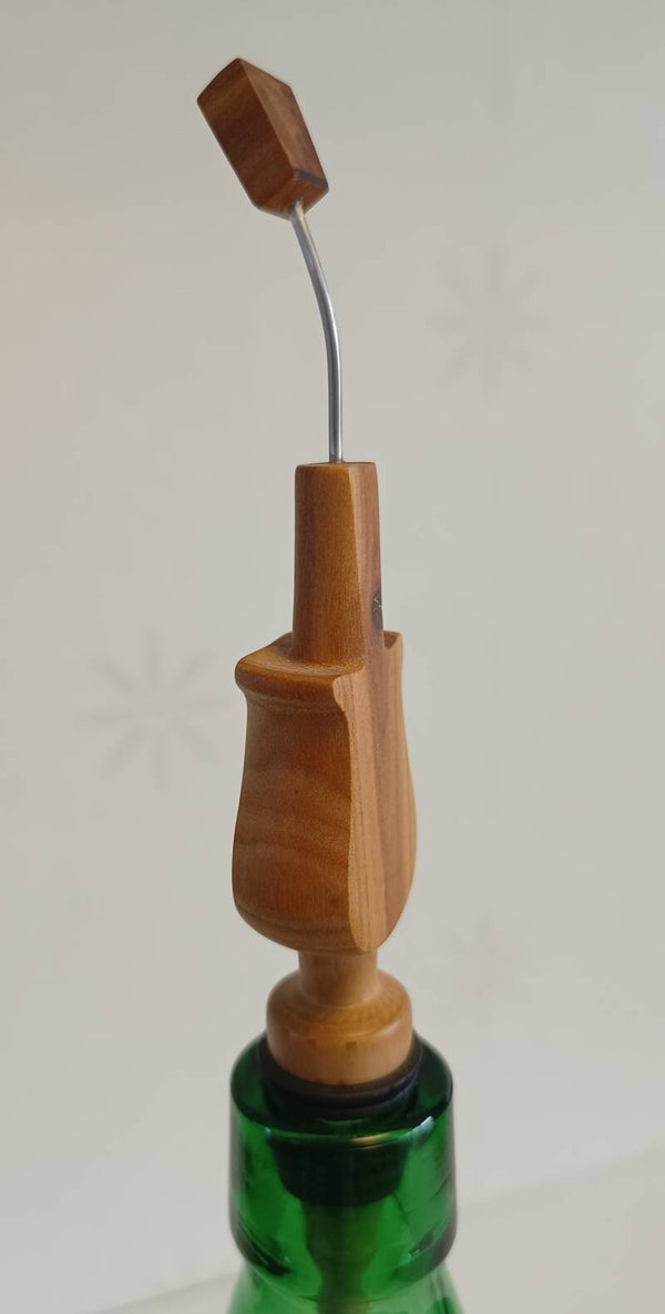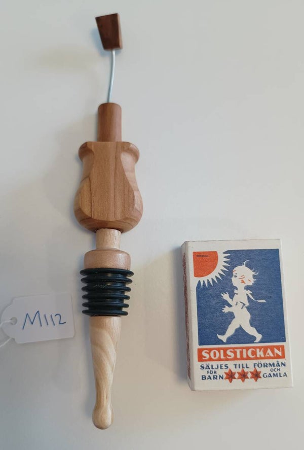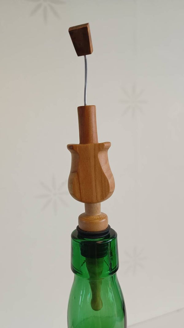 Gitarr-flaskstopp av äppelträ som är svarvad och slutligen är nederdelen behandlad flertalet gånger med livsmedelssäkert friktionsvax.