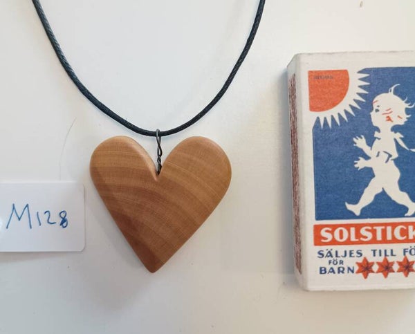 Halsband hjärta är gjord av äppelträ, bearbetad för hand och slutligen behandlad flertalet gånger med linolja för en silkeslen finish.