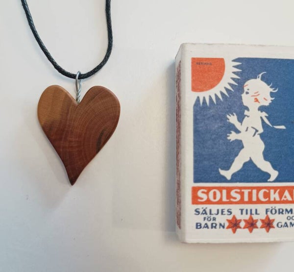 Halsband hjärta är gjord av äppelträ, bearbetad för hand och slutligen behandlad flertalet gånger med linolja för en silkeslen finish.
