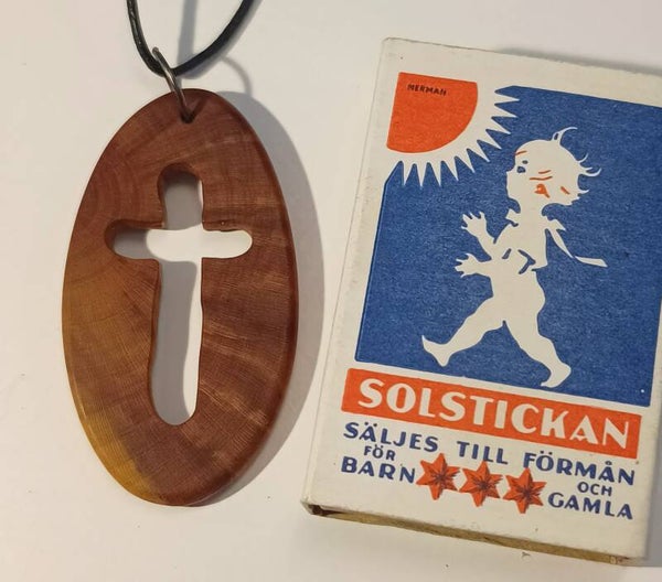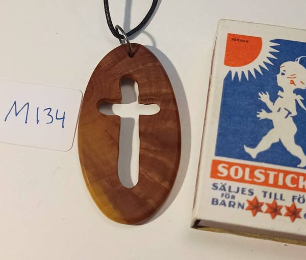 Halsband kors är gjord av äppelträ, bearbetad för hand och slutligen behandlad flertalet gånger med linolja för en silkeslen finish.