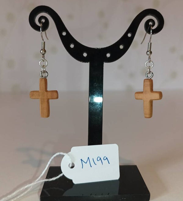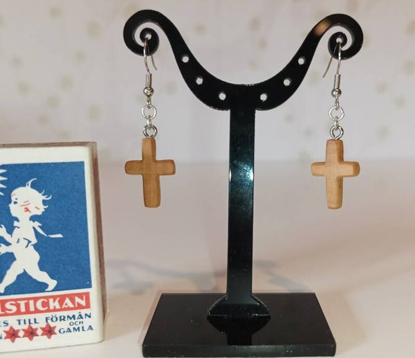 Dessa kors örhängen är gjorda av äppelträ, bearbetad för hand och slutligen behandlad flertalet gånger med linolja för en silkeslen finish.