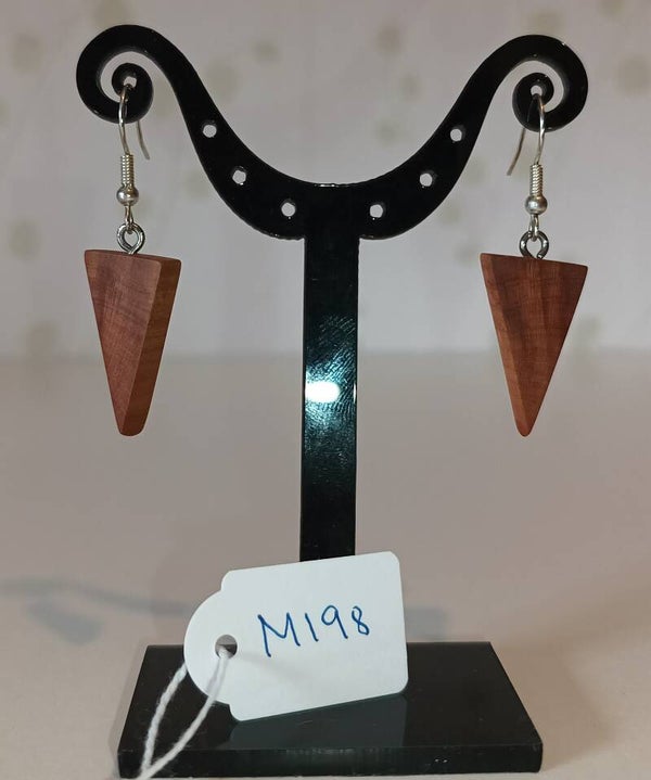 Dessa triangel örhängen är gjorda av äppelträ, bearbetad för hand och slutligen behandlad flertalet gånger med linolja för en silkeslen finish.