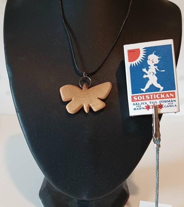 Halsband fjäril är gjort av äppelträ, bearbetad för hand och slutligen behandlad flertalet gånger med linolja för en silkeslen finish.