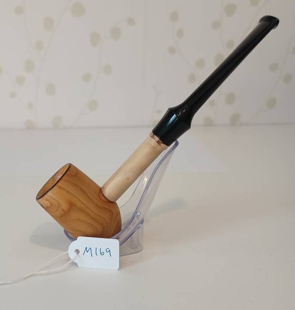 Tobakspipa som är gjord av äppelträ, bearbetad i svarv och för hand. Utsidan är slutligen behandlad flertalet gånger med linolja för en silkeslen finish.
