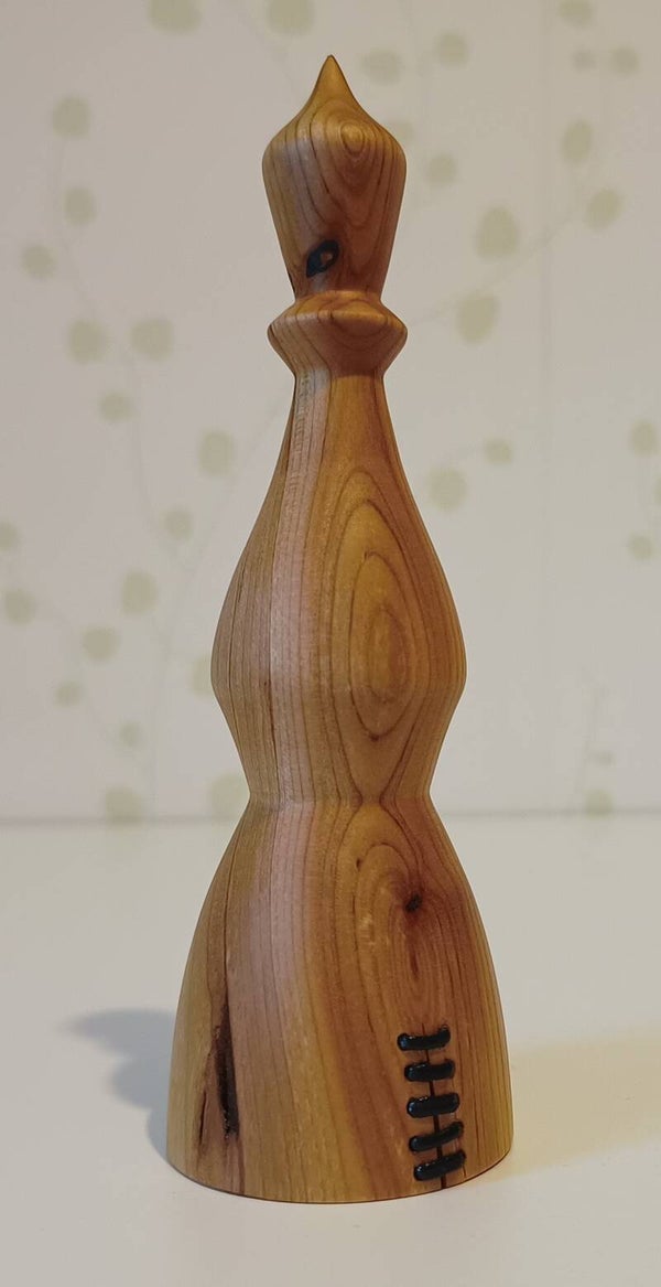 Kapsylöppnare som är gjord av körsbärsträ, bearbetad i svarv och behandlad flertalet gånger med linolja för en silkeslen finish.