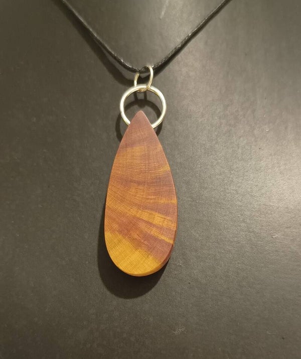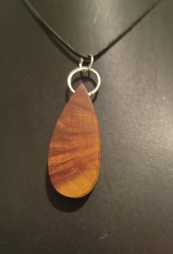 Halssmycke Droppe är gjord av äppelträ, bearbetad för hand och slutligen behandlad flertalet gånger med linolja för en silkeslen finish.
