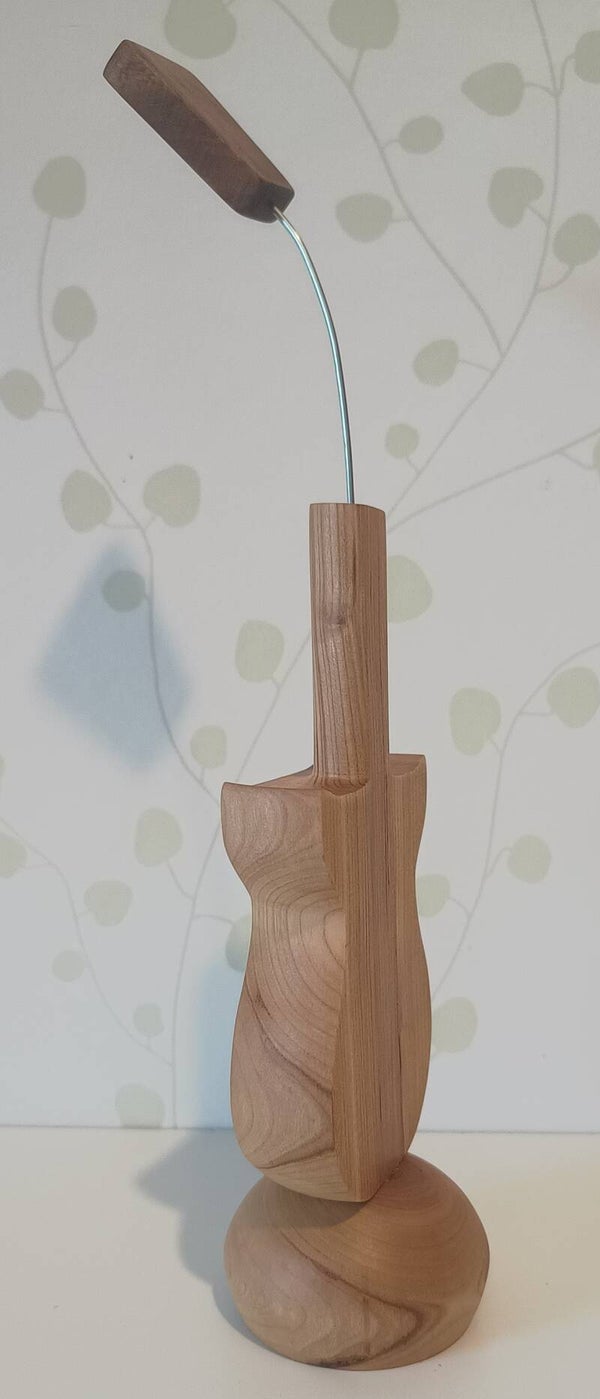 Kapsylöppnare som är gjord av körsbärsträ och ek, bearbetad i svarv och för hand. Behandlad flertalet gånger med linolja..